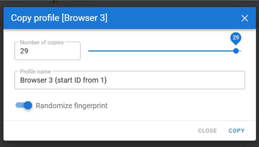 Browser duplication. In just a couple of clicks, you can create multiple copies of a browser profile — for example, 29.